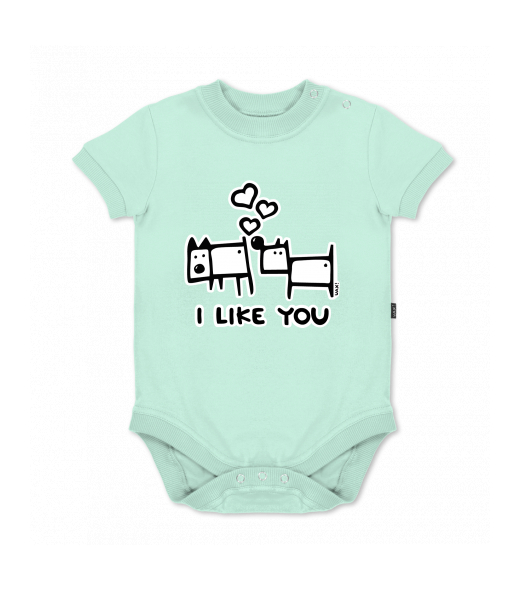 UAX baby body SHORT for kid with design 1066 I LIKE YOU in color MINT