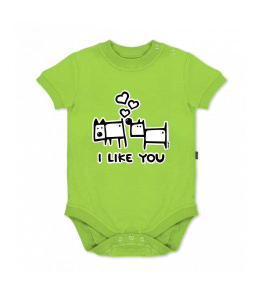 UAX baby body SHORT for kid with design 1066 I LIKE YOU in color PARROT GREEN