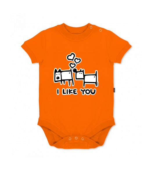 UAX baby body SHORT for kid with design 1066 I LIKE YOU in color SIGNAL ORANGE