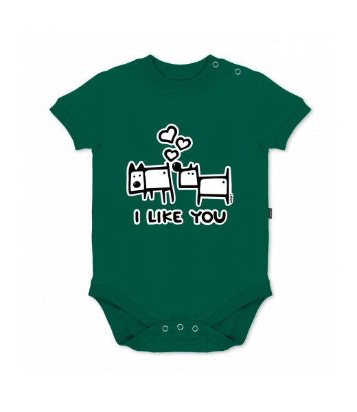 UAX baby body SHORT for kid with design 1066 I LIKE YOU in color UNIVERSITY GREEN