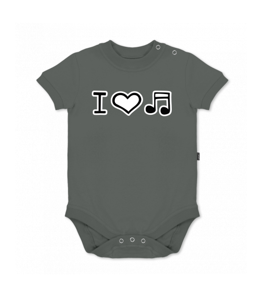 UAX baby body SHORT for kid with design 1067 I LOVE MUSIC in color DARK GRAY