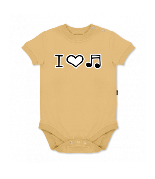UAX baby body SHORT for kid with design 1067 I LOVE MUSIC in color MUSTARD