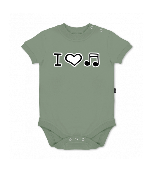 UAX baby body SHORT for kid with design 1067 I LOVE MUSIC in color OLIVA