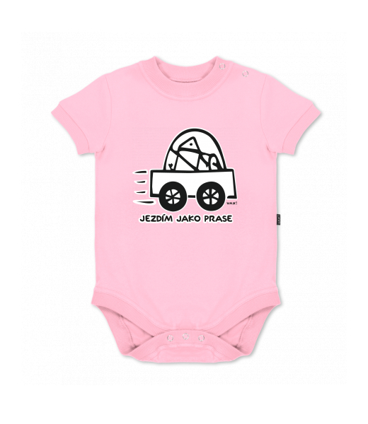 We make sustainable UAX clothing! - hand sewn in the Czech Republic uaxKids uaxAll productsBaby bodyBABY BODY SHORTdesign 1072 - JEZDÍM JAKO PRASEBABY PINK