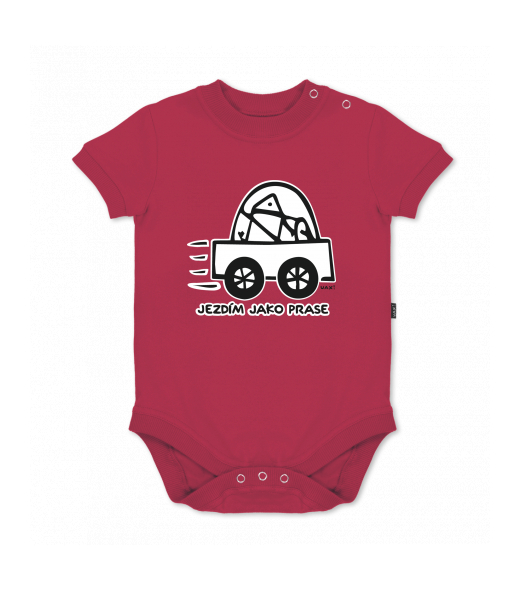 We make sustainable UAX clothing! - hand sewn in the Czech Republic uaxKids uaxAll productsBaby bodyBABY BODY SHORTdesign 1072 - JEZDÍM JAKO PRASECHILLY PEPPER RED