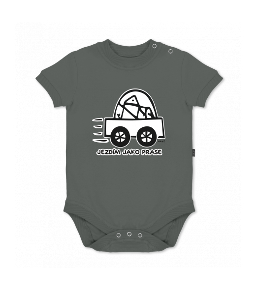 We make sustainable UAX clothing! - hand sewn in the Czech Republic uaxKids uaxAll productsBaby bodyBABY BODY SHORTdesign 1072 - JEZDÍM JAKO PRASEDARK GRAY