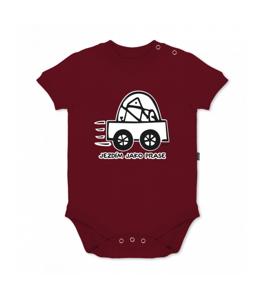 We make sustainable UAX clothing! - hand sewn in the Czech Republic uaxKids uaxAll productsBaby bodyBABY BODY SHORTdesign 1072 - JEZDÍM JAKO PRASEDARK RED