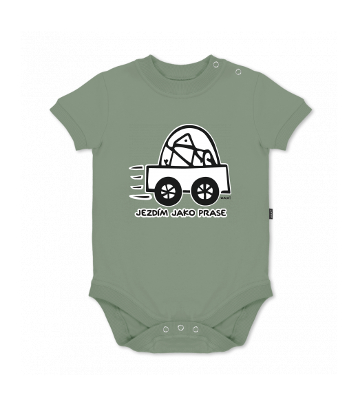 We make sustainable UAX clothing! - hand sewn in the Czech Republic uaxKids uaxAll productsBaby bodyBABY BODY SHORTdesign 1072 - JEZDÍM JAKO PRASEOLIVA
