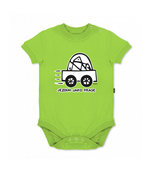 We make sustainable UAX clothing! - hand sewn in the Czech Republic uaxKids uaxAll productsBaby bodyBABY BODY SHORTdesign 1072 - JEZDÍM JAKO PRASEPARROT GREEN