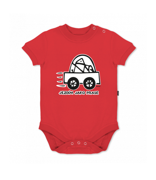 UAX baby body SHORT for kid with design 1072 JEZDÍM JAKO PRASE in color RED