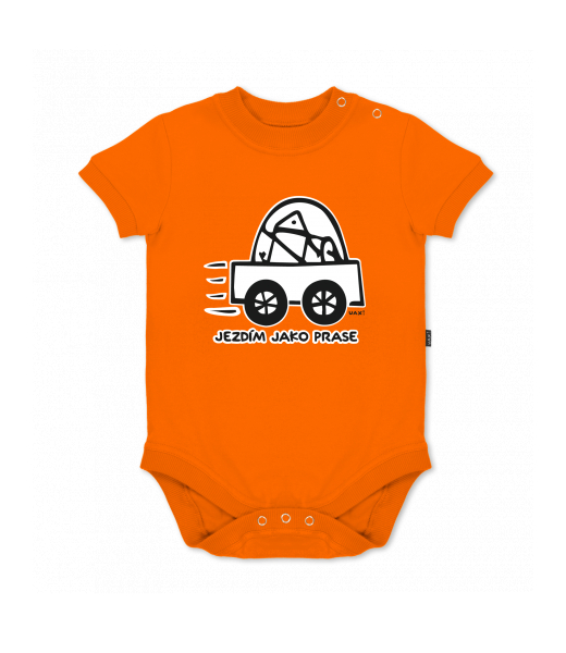 We make sustainable UAX clothing! - hand sewn in the Czech Republic uaxKids uaxAll productsBaby bodyBABY BODY SHORTdesign 1072 - JEZDÍM JAKO PRASESIGNAL ORANGE
