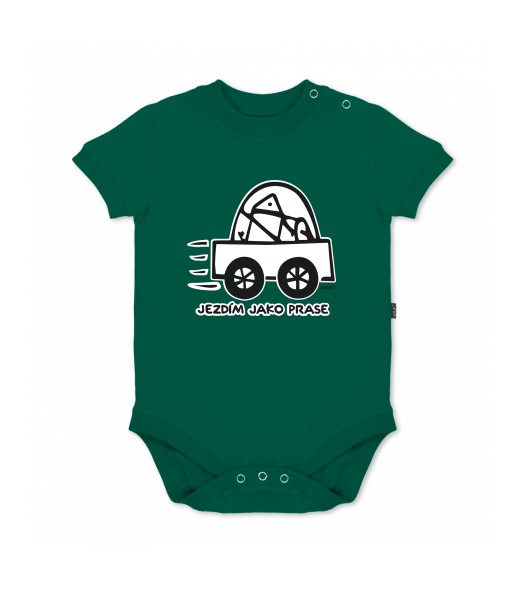 We make sustainable UAX clothing! - hand sewn in the Czech Republic uaxKids uaxAll productsBaby bodyBABY BODY SHORTdesign 1072 - JEZDÍM JAKO PRASEUNIVERSITY GREEN