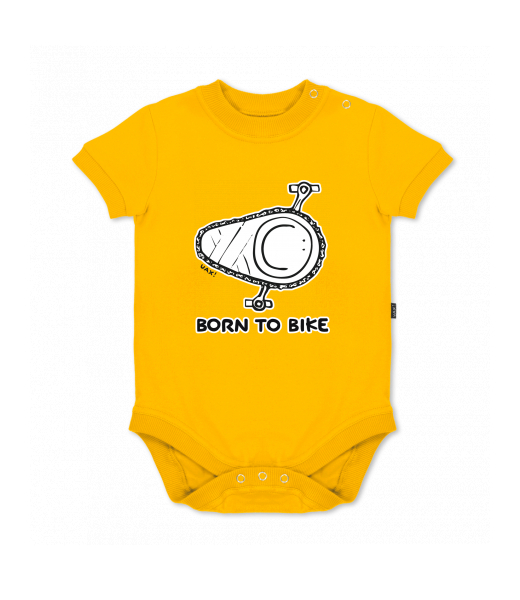 We make sustainable UAX clothing! - hand sewn in the Czech Republic uaxKids uaxAll productsBaby bodyBABY BODY SHORTdesign 1074 - BORN TO BIKEGOLDEN CREAM