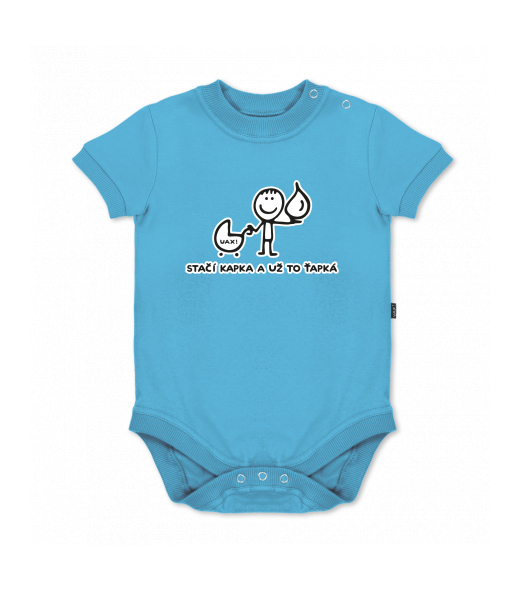 UAX baby body SHORT for kid with design 1081 STAČÍ KAPKA A UŽ TO ŤAPKÁ in color BLUE ATOLL