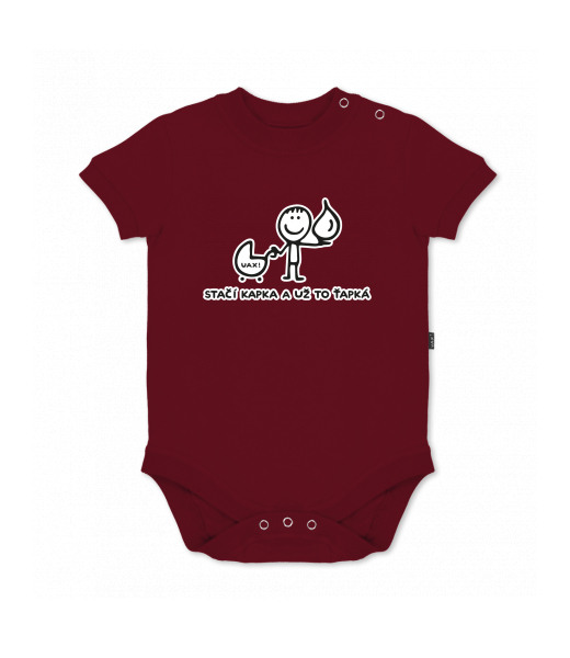 UAX baby body SHORT for kid with design 1081 STAČÍ KAPKA A UŽ TO ŤAPKÁ in color DARK RED