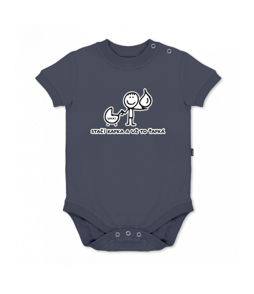 UAX baby body SHORT for kid with design 1081 STAČÍ KAPKA A UŽ TO ŤAPKÁ in color GRAY INK