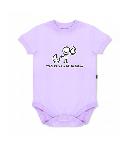 UAX baby body SHORT for kid with design 1081 STAČÍ KAPKA A UŽ TO ŤAPKÁ in color LAVENDER
