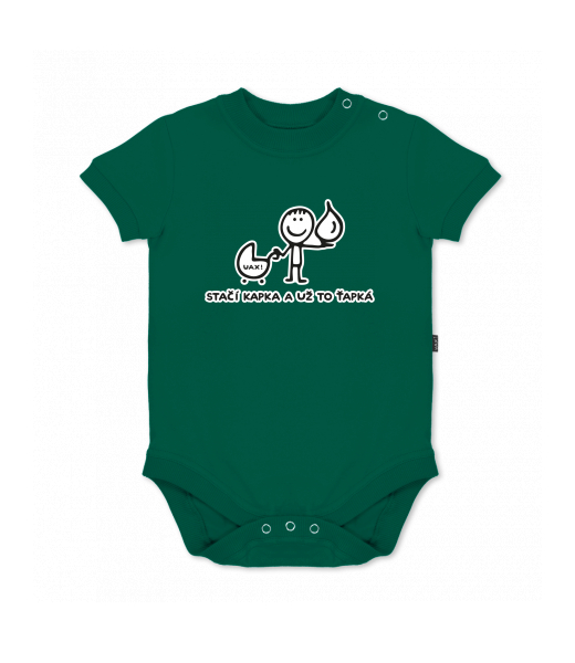 UAX baby body SHORT for kid with design 1081 STAČÍ KAPKA A UŽ TO ŤAPKÁ in color UNIVERSITY GREEN