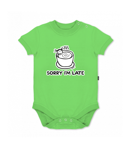 UAX baby body SHORT for kid with design 1087 SORRY IM LATE in color APPLE