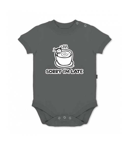 UAX baby body SHORT for kid with design 1087 SORRY IM LATE in color DARK GRAY