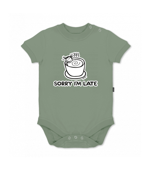 UAX baby body SHORT for kid with design 1087 SORRY IM LATE in color OLIVA