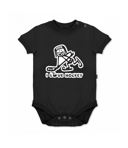 UAX baby body SHORT for kid with design 1100 I LOVE HOCKEY in color BLACK