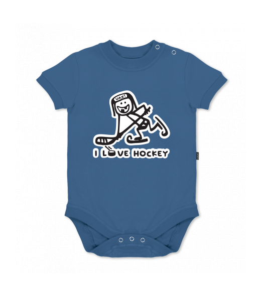 UAX baby body SHORT for kid with design 1100 I LOVE HOCKEY in color MOONLIGHT BLUE