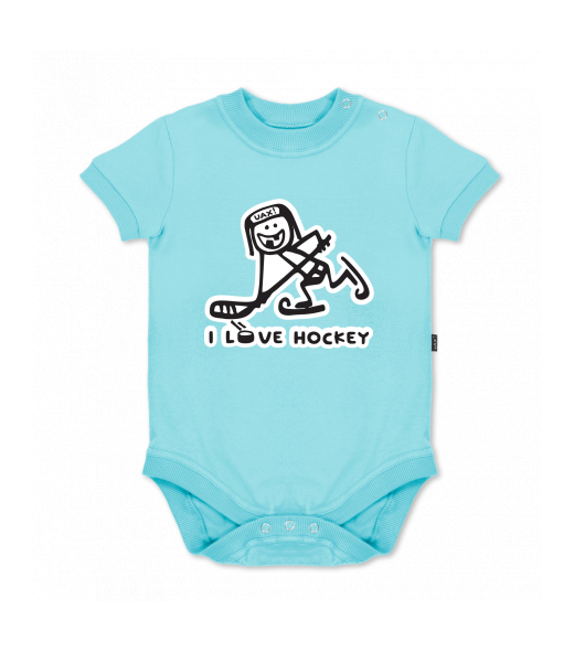 UAX baby body SHORT for kid with design 1100 I LOVE HOCKEY in color PASTEL BLUE
