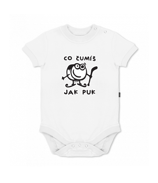 UAX baby body SHORT for kid with design 1101 ČUMÍŠ JAK PUK in color WHITE