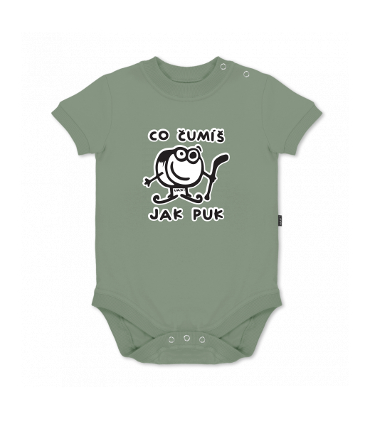 UAX baby body SHORT for kid with design 1101 ČUMÍŠ JAK PUK in color OLIVA