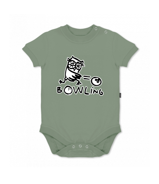 UAX baby body SHORT for kid with design 1103 BOWLING in color OLIVA
