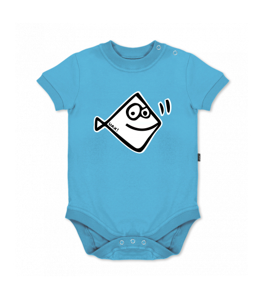 UAX baby body SHORT for kid with design 1111 PIRANHA in color BLUE ATOLL