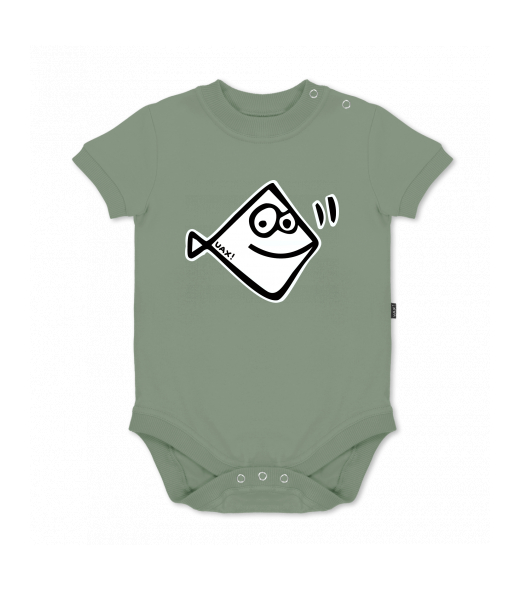 UAX baby body SHORT for kid with design 1111 PIRANHA in color OLIVA
