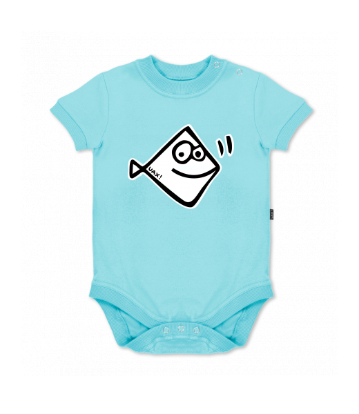 UAX baby body SHORT for kid with design 1111 PIRANHA in color PASTEL BLUE