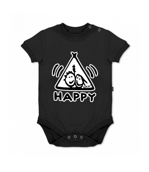 UAX baby body SHORT for kid with design 1113 HAPPY in color BLACK