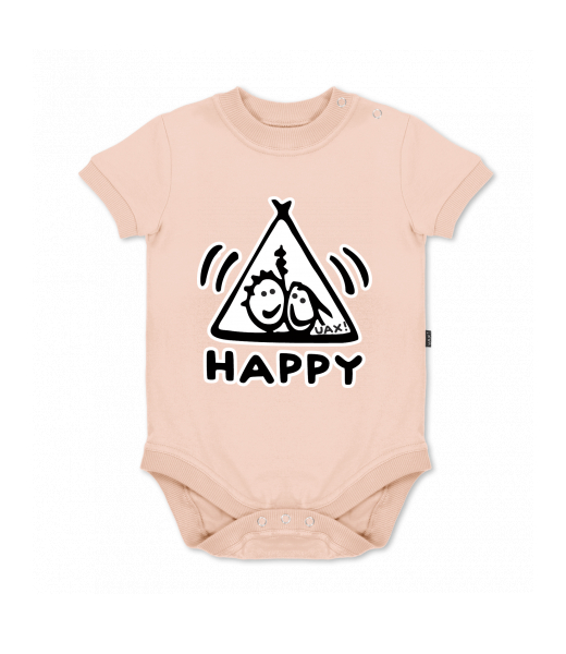UAX baby body SHORT for kid with design 1113 HAPPY in color CAPPUCINO