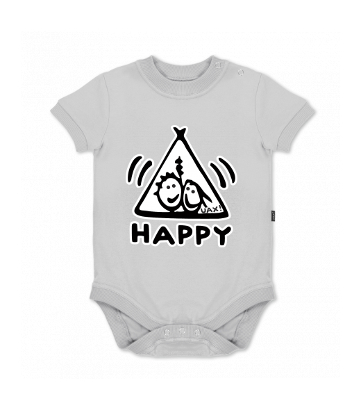 UAX baby body SHORT for kid with design 1113 HAPPY in color CEMENT