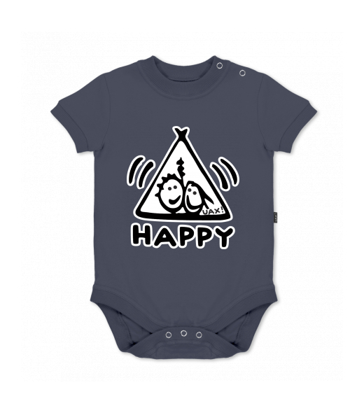 UAX baby body SHORT for kid with design 1113 HAPPY in color GRAY INK