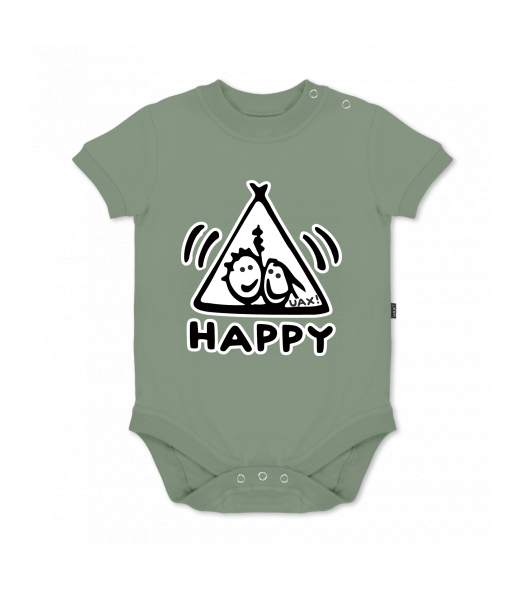 UAX baby body SHORT for kid with design 1113 HAPPY in color OLIVA