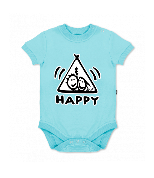 UAX baby body SHORT for kid with design 1113 HAPPY in color PASTEL BLUE