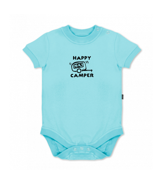 UAX baby body SHORT for kid with design 1116 HAPPY CAMPER in color PASTEL BLUE
