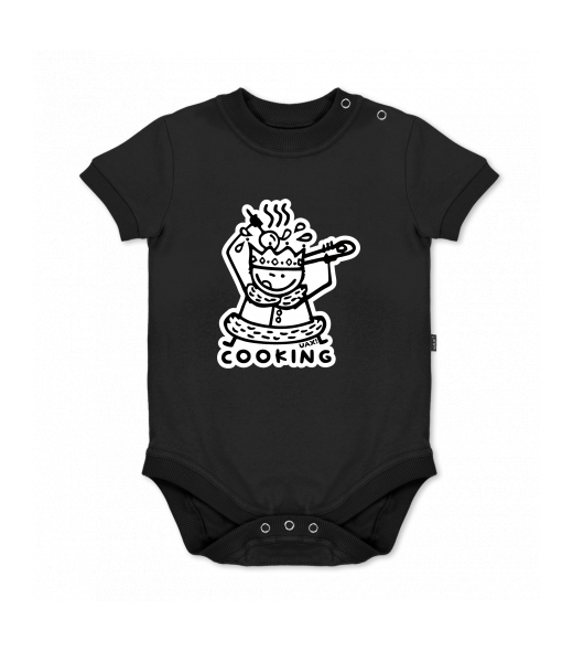 UAX baby body SHORT for kid with design 1117 COOKING in color BLACK