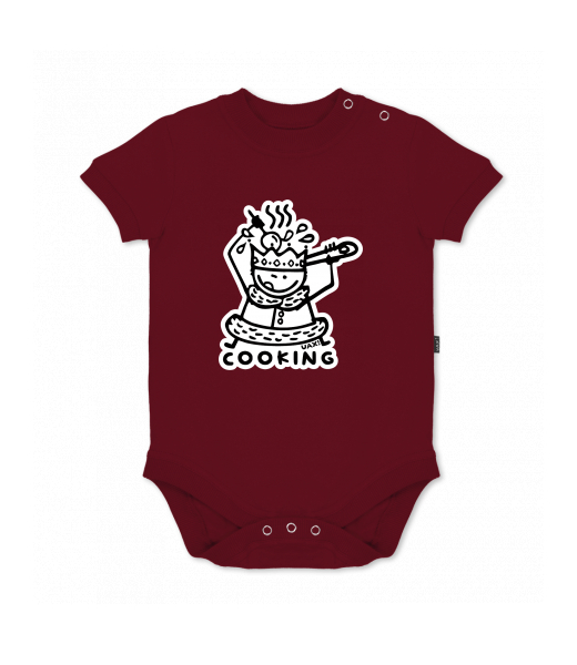 UAX baby body SHORT for kid with design 1117 COOKING in color DARK RED