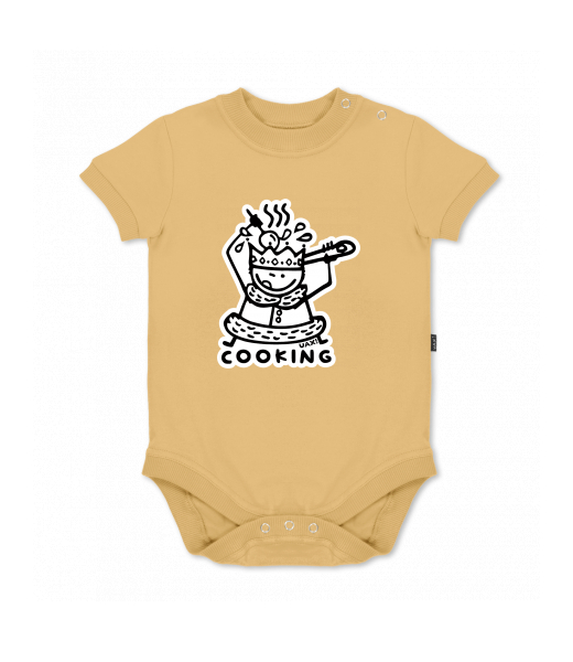 UAX baby body SHORT for kid with design 1117 COOKING in color MUSTARD