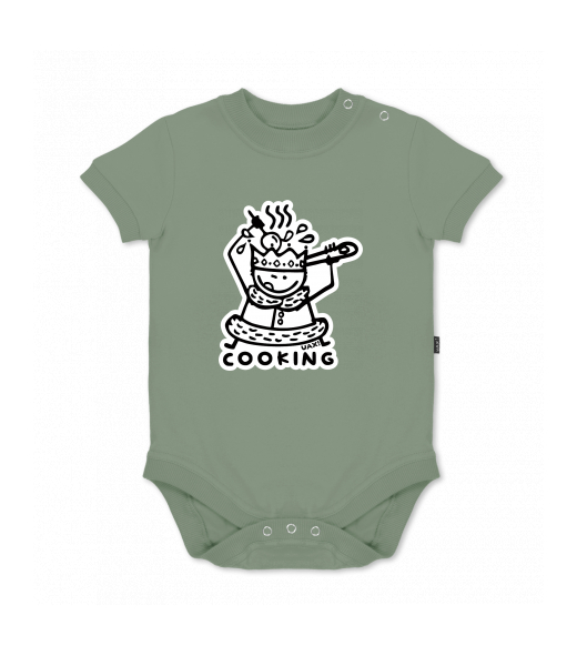 UAX baby body SHORT for kid with design 1117 COOKING in color OLIVA