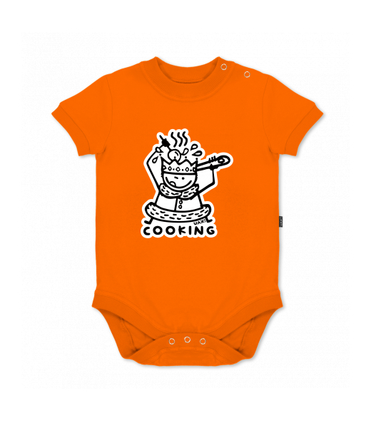 UAX baby body SHORT for kid with design 1117 COOKING in color SIGNAL ORANGE