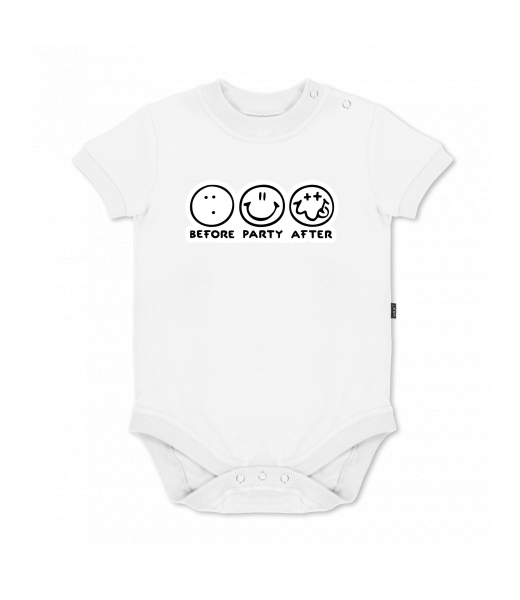 UAX baby body SHORT for kid with design 1120 BEFORE PARTY AFTER in color WHITE