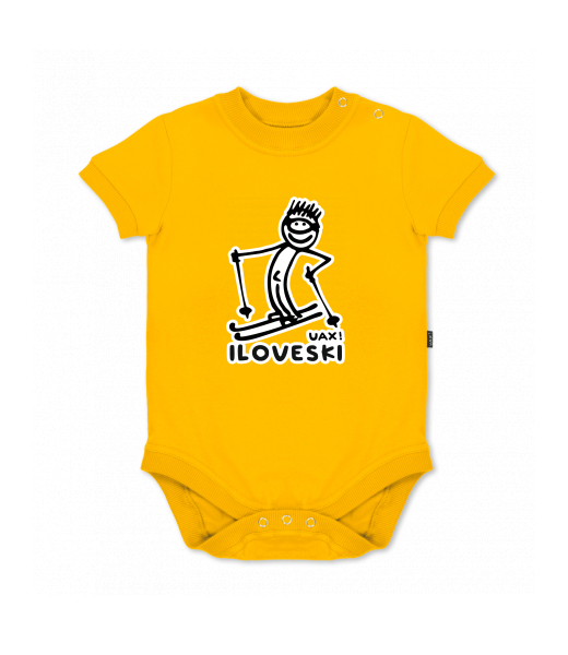 We make sustainable UAX clothing! - hand sewn in the Czech Republic uaxKids uaxAll productsBaby bodyBABY BODY SHORTdesign 1122 - I LOVE SKIGOLDEN CREAM