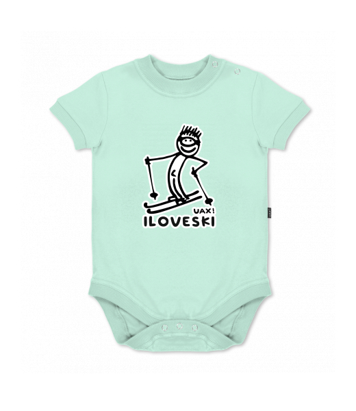 UAX baby body SHORT for kid with design 1122 I LOVE SKI in color MINT