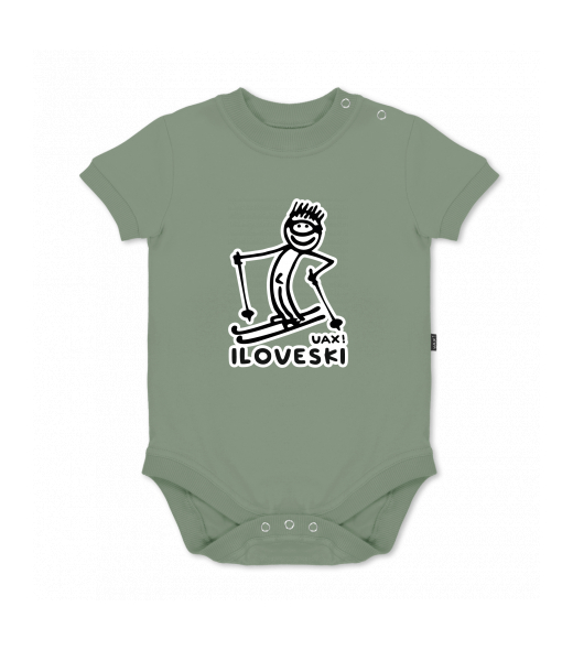 UAX baby body SHORT for kid with design 1122 I LOVE SKI in color OLIVA